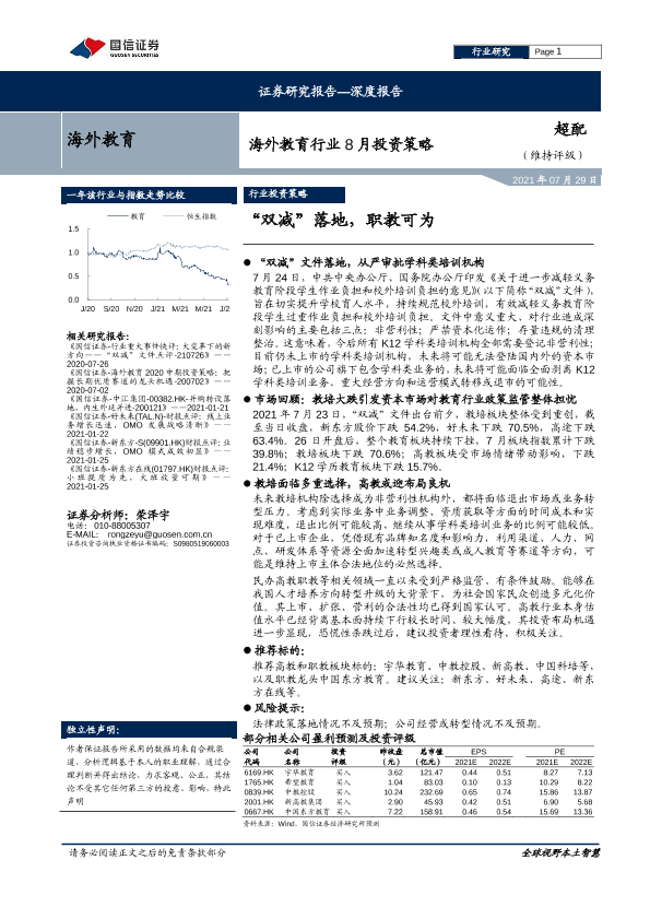 【国信证券】【20210729】海外教育行业8月投资策略:“双减”落地,职教可为-16页