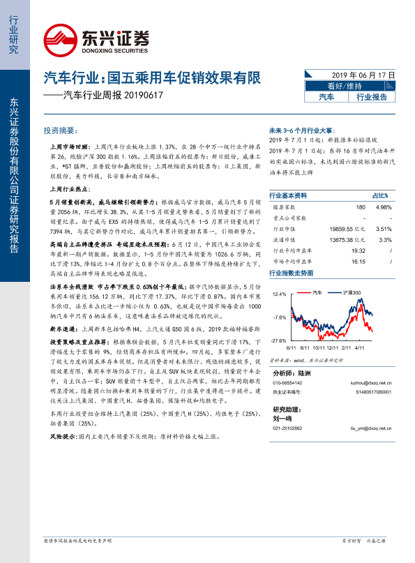 【东兴证券】【20190617】汽车行业周报:国五乘用车促销效果有限-16页