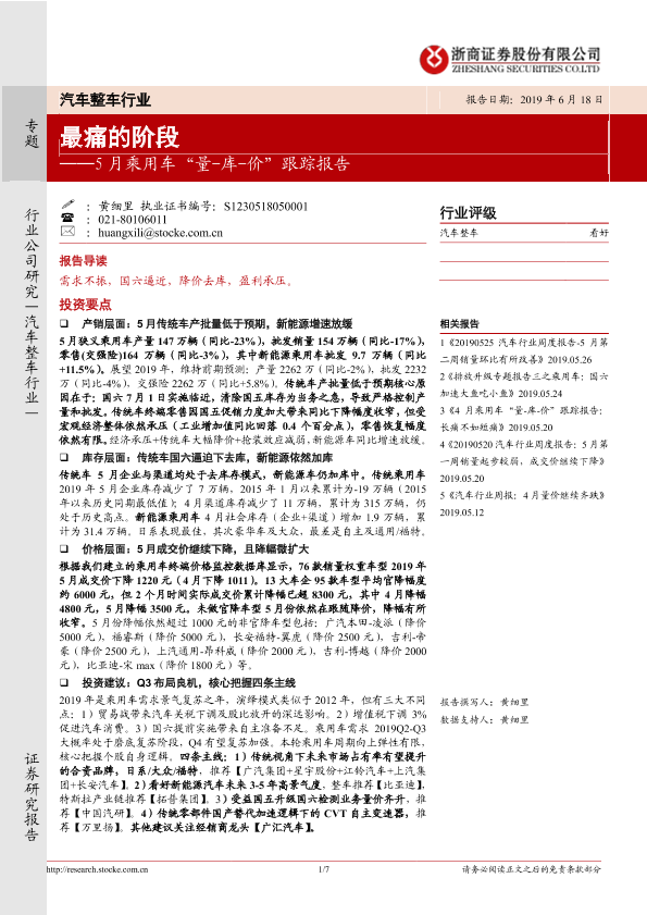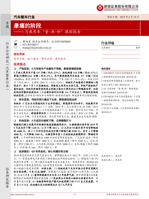 【浙商证券】【20190618】5月乘用车“量-库-价”跟踪报告:最痛的阶段-7页