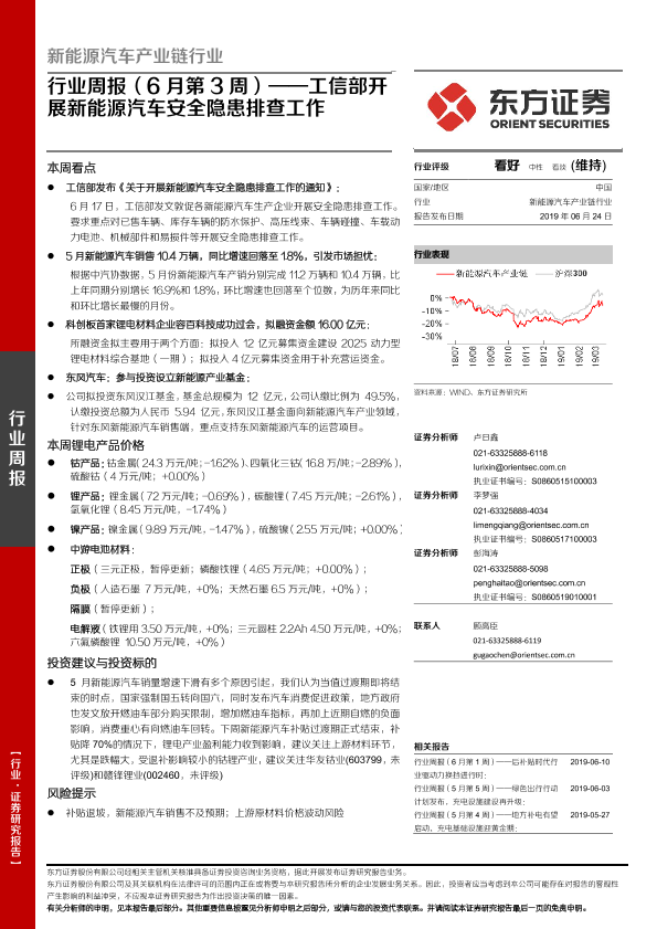 【东方证券】【20190624】新能源汽车产业链行业周报(6月第3周)——工信部开展新能源汽车安全隐患排查工作-32页