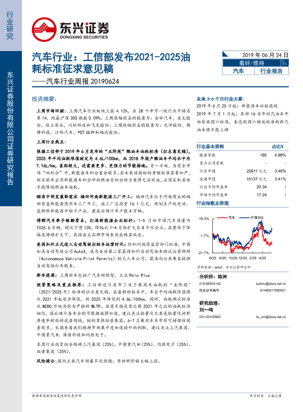 【东兴证券】【20190624】汽车行业周报:工信部发布2021-2025油耗标准征求意见稿-14页