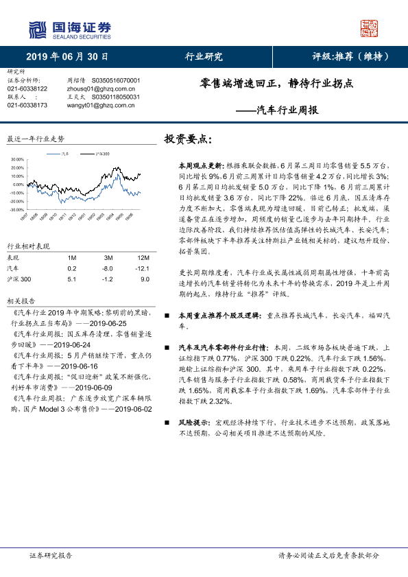 【国海证券】【20190630】汽车行业周报:零售端增速回正,静待行业拐点-16页