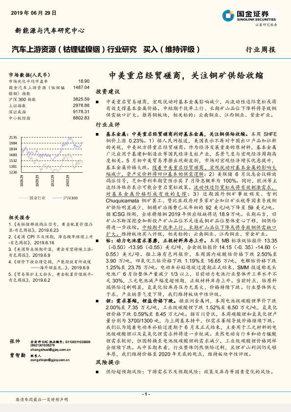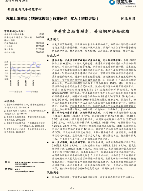 【国金证券】【20190629】20190629-国金证券-汽车上游资源(钴锂锰镍铟)行业研究周报:中美重启经贸磋商,关注铜矿供给收缩-8页