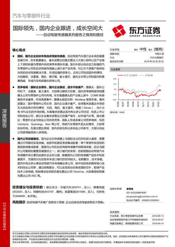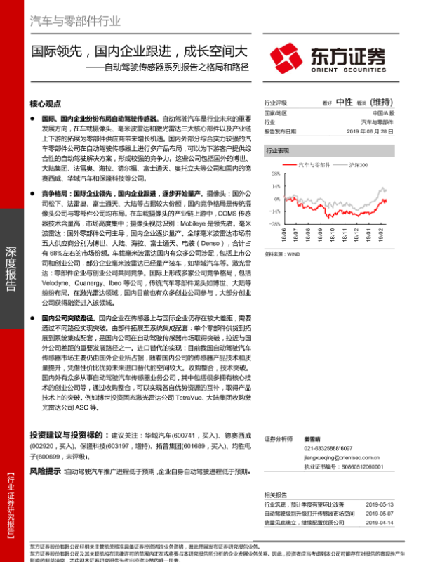 【东方证券】【20190628】汽车与零部件行业深度报告:自动驾驶传感器系列报告之格局和路径-33页