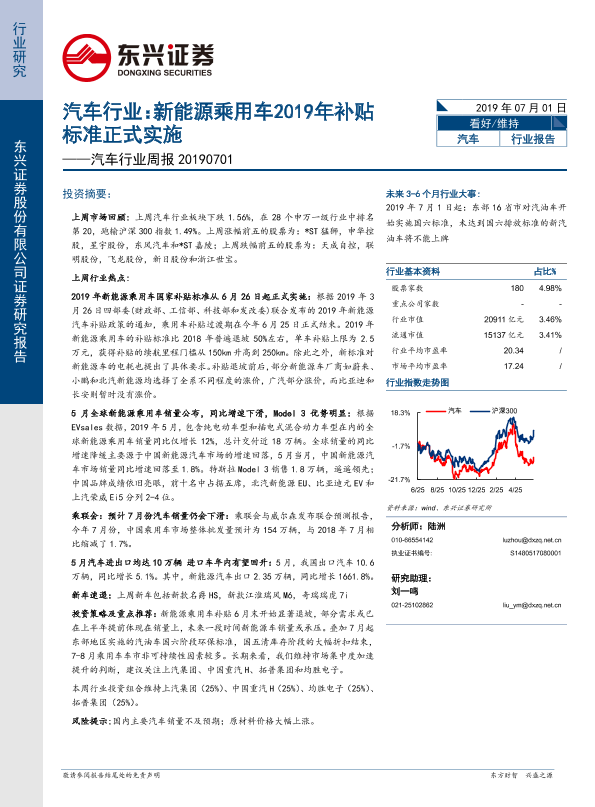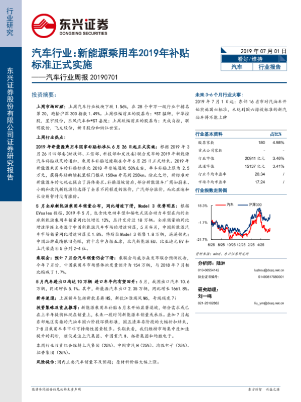 【东兴证券】【20190701】汽车行业周报:新能源乘用车2019年补贴标准正式实施-15页