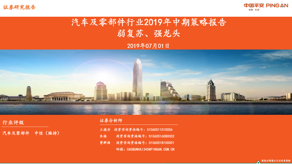【平安证券】【20190701】汽车及零部件行业2019年中期策略报告:弱复苏、强龙头-54页