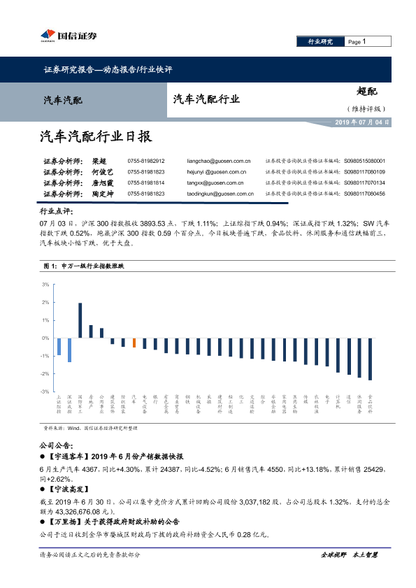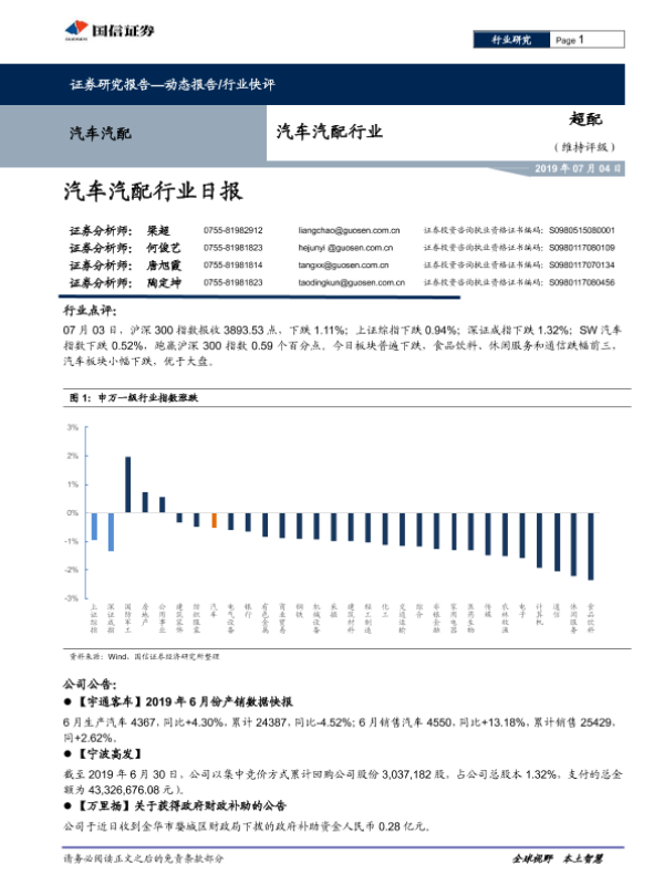 【国信证券】【20190704】汽车汽配行业日报-8页