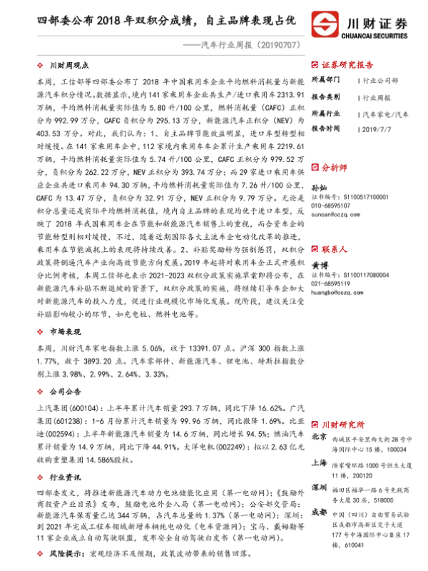 【川财证券】【20190707】四部委公布2018年双积分成绩,自主品牌表现占优-10页
