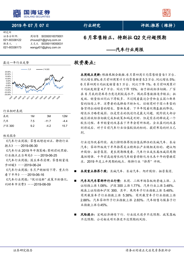 【国海证券】【20190707】20190707-国海证券-汽车行业周报:6月零售转正,特斯拉Q2交付超预期-17页