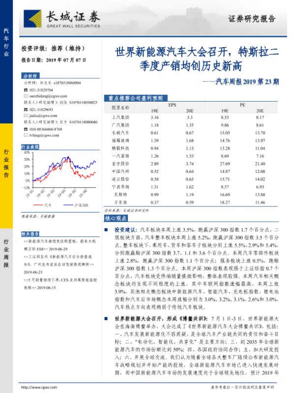 【长城证券】【20190707】汽车周报2019第23期:世界新能源汽车大会召开,特斯拉二季度产销均创历史新高-14页