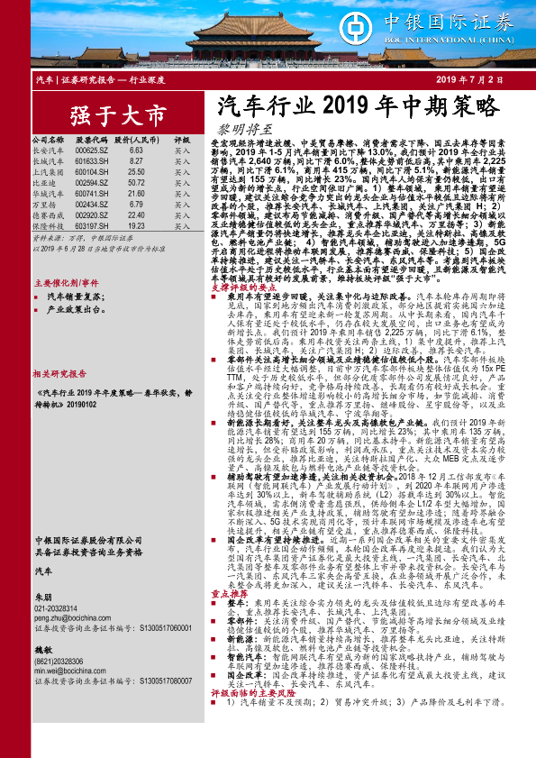 【中银证券】【20190702】汽车行业2019年中期策略:黎明将至-53页
