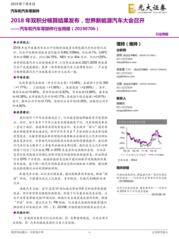 【光大证券】【20190708】20190708-光大证券-汽车和汽车零部件行业周报:2018年双积分核算结果发布,世界新能源汽车大会召开-16页