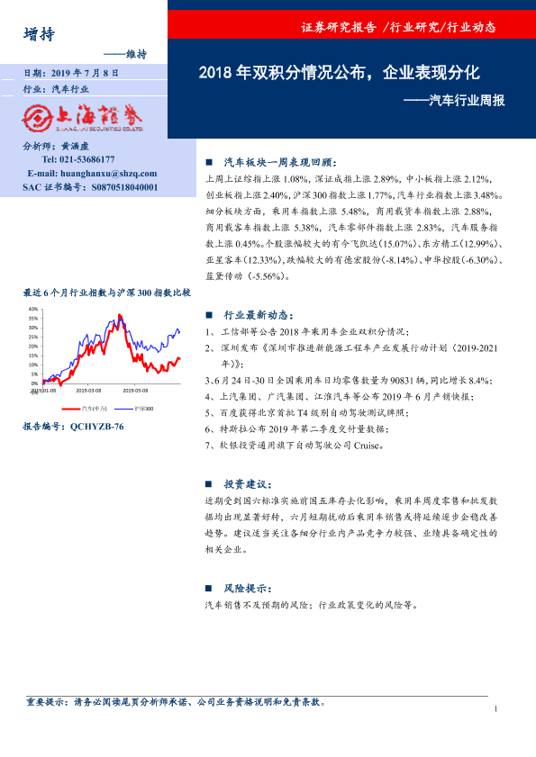 【上海证券】【20190708】20190708-上海证券-汽车行业周报:2018年双积分情况公布,企业表现分化-9页