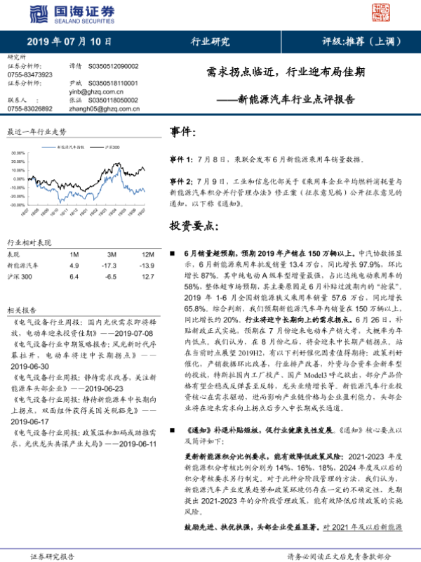 【国海证券】【20190710】新能源汽车行业点评报告:需求拐点临近,行业迎布局佳期-6页