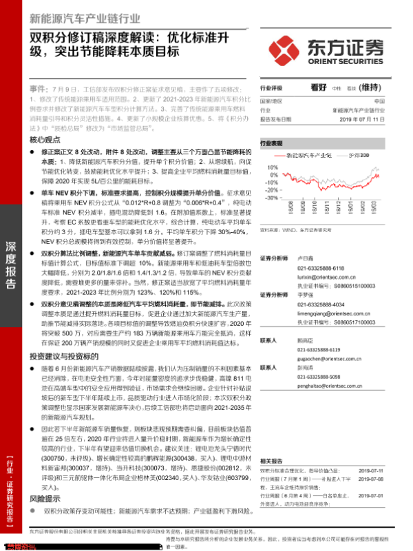 【东方证券】【20190711】双积分修订稿深度解读:优化标准升级,突出节能降耗本质目标-20页