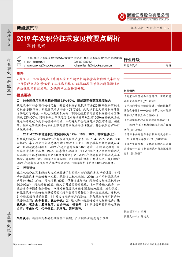 【浙商证券】【20190710】2019年双积分征求意见稿要点解析-5页