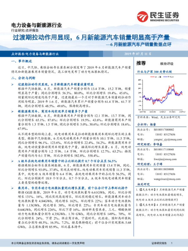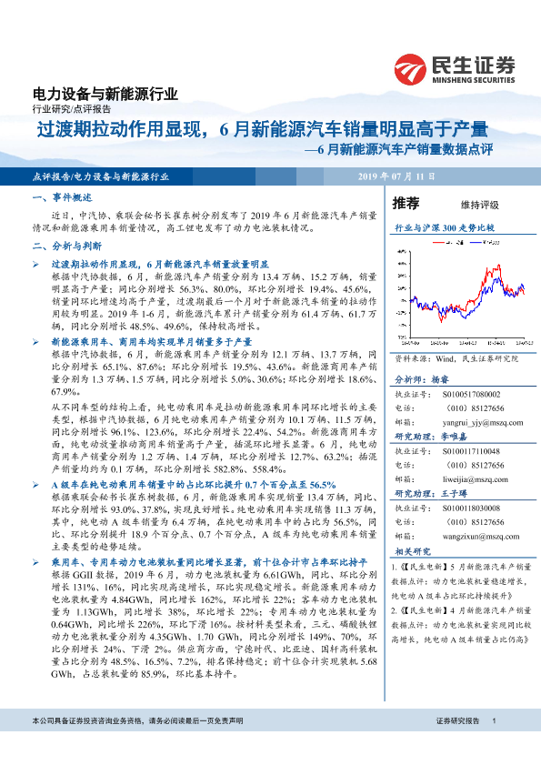 【民生证券】【20190711】6月新能源汽车产销量数据点评:过渡期拉动作用显现,6月新能源汽车销量明显高于产量-4页