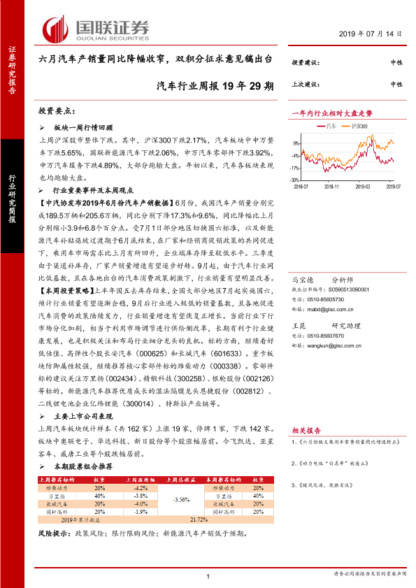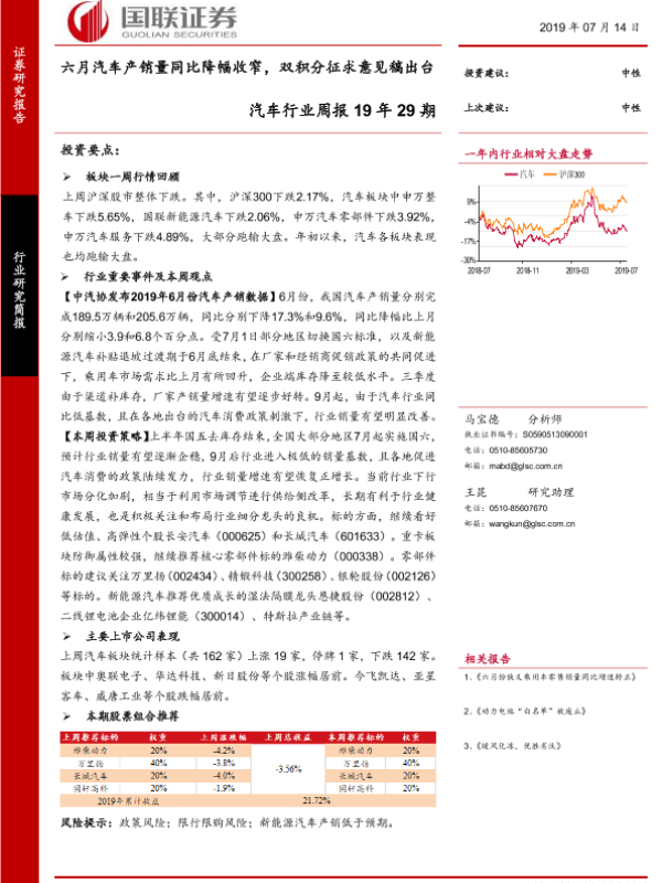 【国联证券】【20190714】六月汽车产销量同比降幅收窄,双积分征求意见稿出台-18页