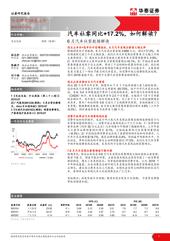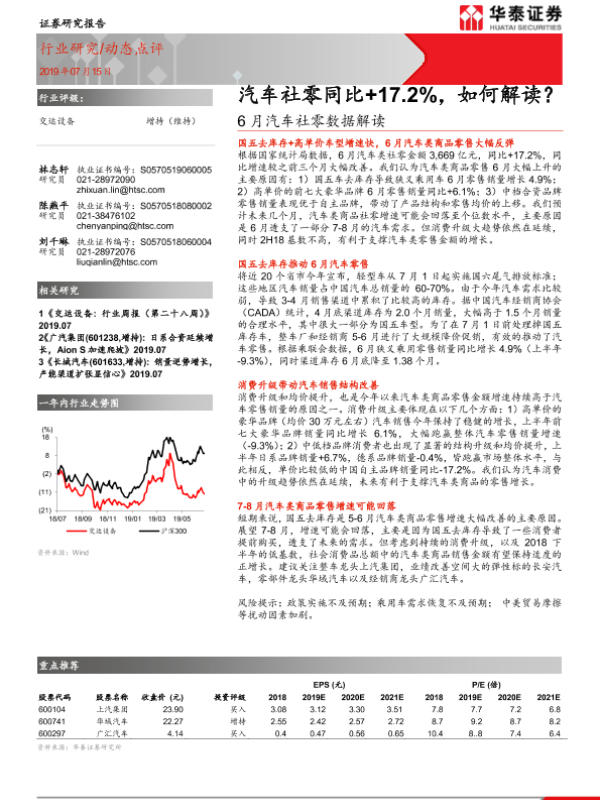 【华泰证券】【20190715】6月汽车社零数据解读:汽车社零同比+17.2%,如何解读?-2页