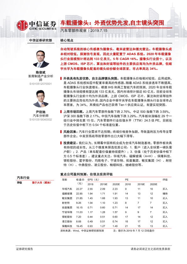【中信证券】【20190715】汽车零部件观察:车载摄像头:外资优势先发,自主镜头突围-12页