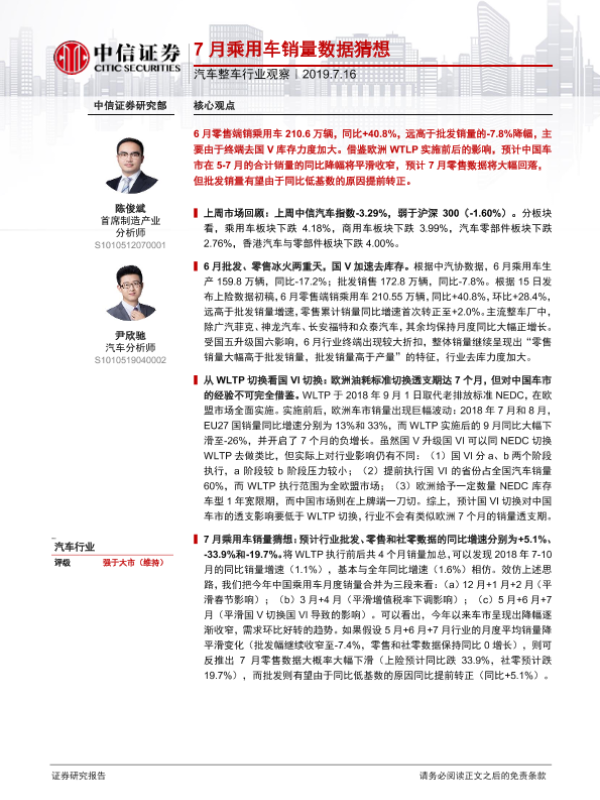 【中信证券】【20190716】7月乘用车销量数据猜想-14页
