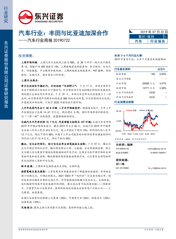 【东兴证券】【20190722】汽车行业周报:丰田与比亚迪加深合作-14页