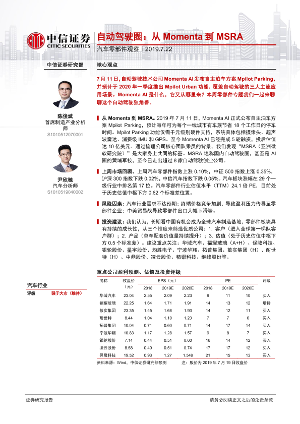 【中信证券】【20190722】汽车零部件观察:自动驾驶圈:从Momenta到MSRA-13页