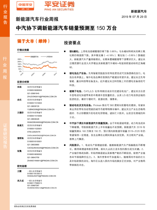 【平安证券】【20190729】20190729-平安证券-新能源汽车行业周报:中汽协下调新能源汽车销量预测至150万台-9页