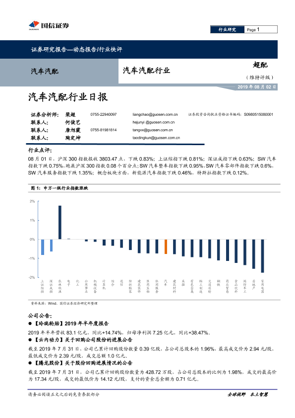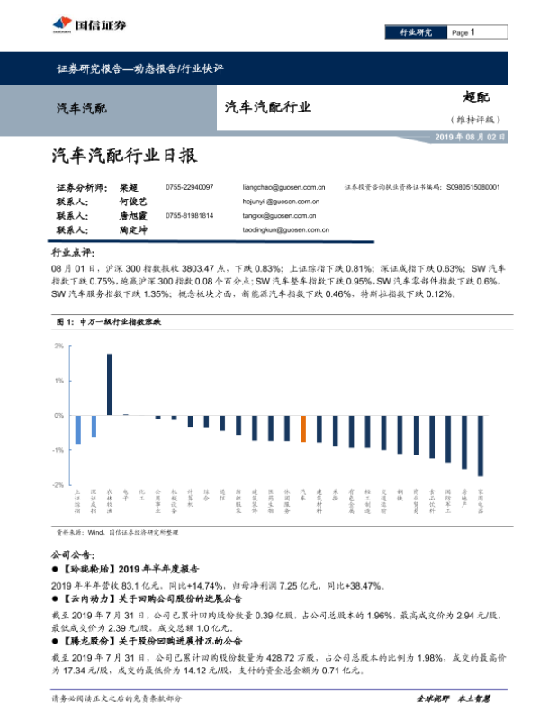【国信证券】【20190802】汽车汽配行业日报-6页