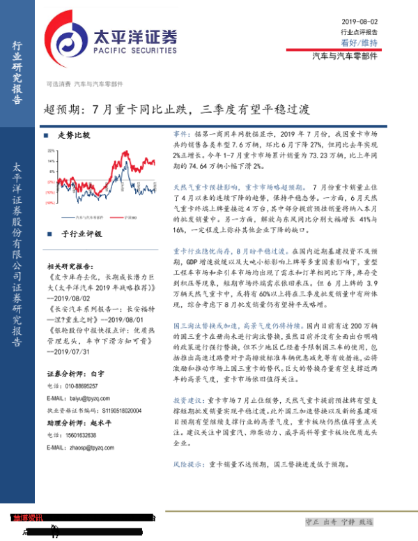 【太平洋证券】【20190802】超预期:7月重卡同比止跌,三季度有望平稳过渡-3页