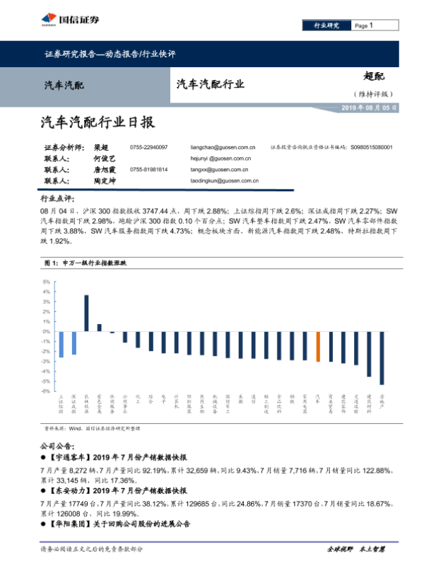 【国信证券】【20190805】汽车汽配行业日报-7页