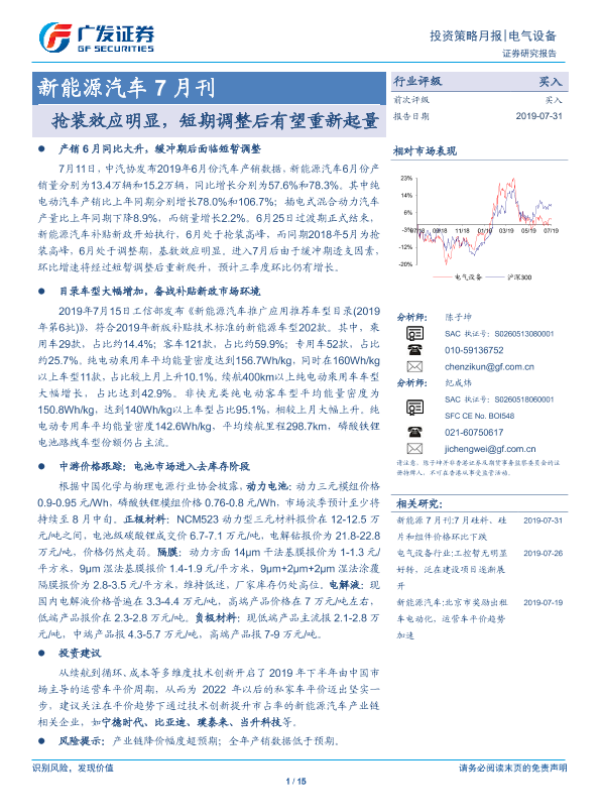 【广发证券】【20190731】20190731-广发证券-新能源汽车7月刊:抢装效应明显,短期调整后有望重新起量-15页