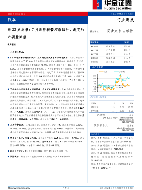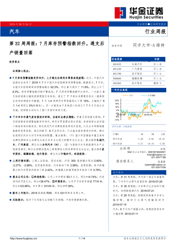 【华金证券】【20190804】汽车第32周周报:7月库存预警指数回升,透支后产销量回落-14页