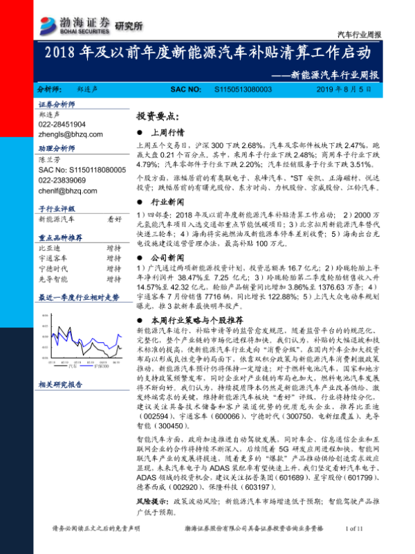 【渤海证券】【20190805】2018年及以前年度新能源汽车补贴清算工作启动-11页