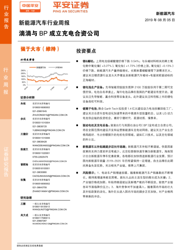 【平安证券】【20190805】20190805-平安证券-新能源汽车行业周报:滴滴与BP成立充电合资公司-10页