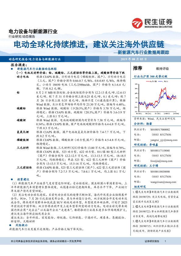 【民生证券】【20190805】20190805-民生证券-新能源汽车行业数据周跟踪:电动全球化持续推进,建议关注海外供应链-12页