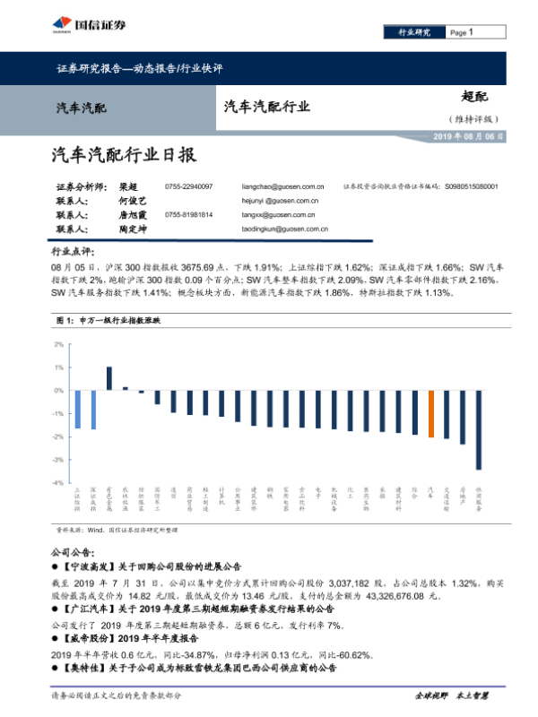 【国信证券】【20190806】汽车汽配行业日报-6页