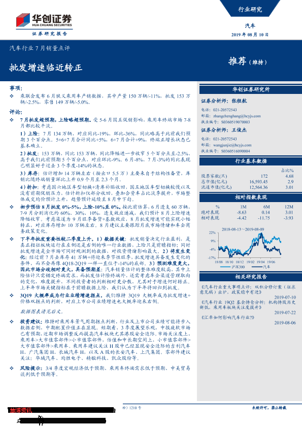 【华创证券】【20190810】汽车行业7月销量点评:批发增速临近转正-11页