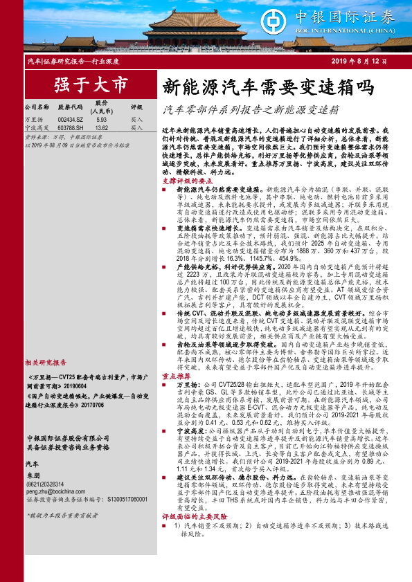 【中银证券】【20190812】汽车零部件系列报告之新能源变速箱:新能源汽车需要变速箱吗-48页