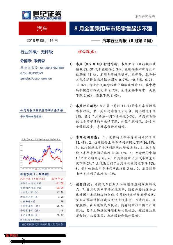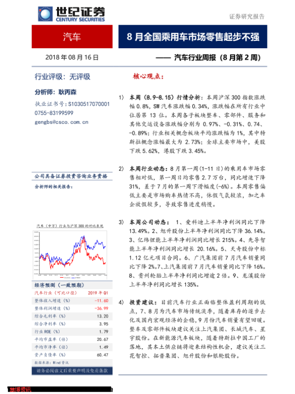 【世纪证券】【20190816】20190816-世纪证券-汽车行业周报(8月第2周):8月全国乘用车市场零售起步不强-11页