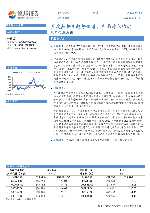 【德邦证券】【20190818】20190818-德邦证券-汽车行业周报:月度数据呈趋势改善,布局时点临近-10页