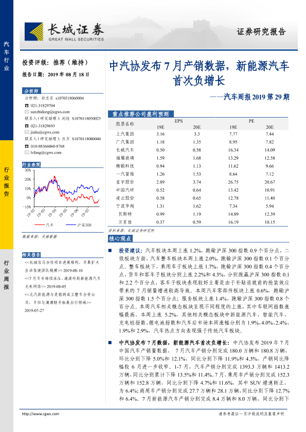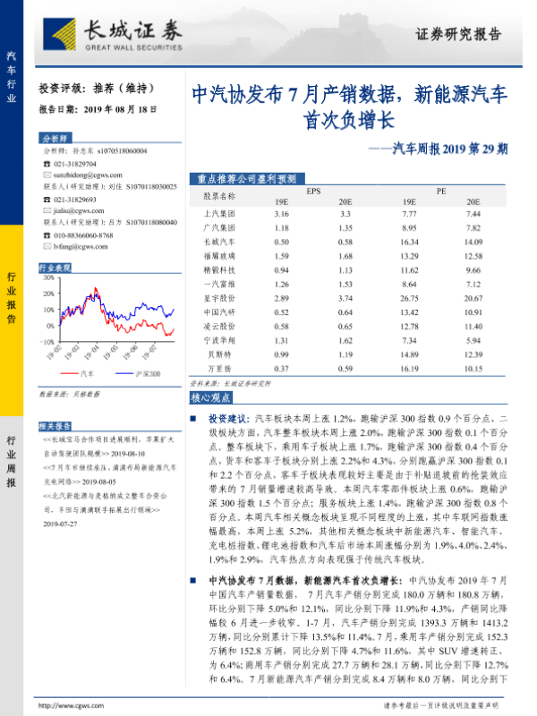 【长城证券】【20190818】汽车周报2019第29期:中汽协发布7月产销数据,新能源汽车首次负增长-12页