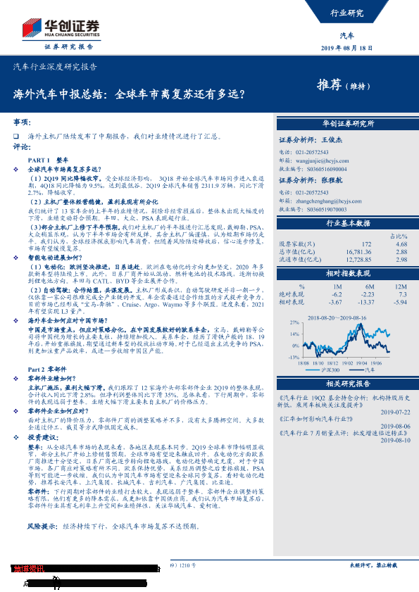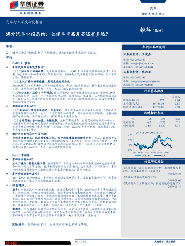 【华创证券】【20190818】海外汽车中报总结:全球车市离复苏还有多远?-26页