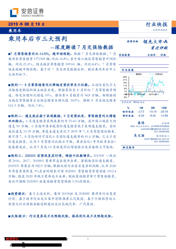 【安信证券】【20190819】深度解读7月交强险数据:乘用车后市三大预判-8页