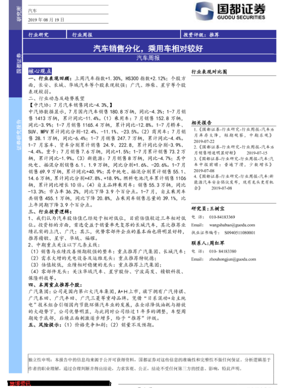 【国都证券】【20190819】汽车周报:汽车销售分化,乘用车相对较好-2页