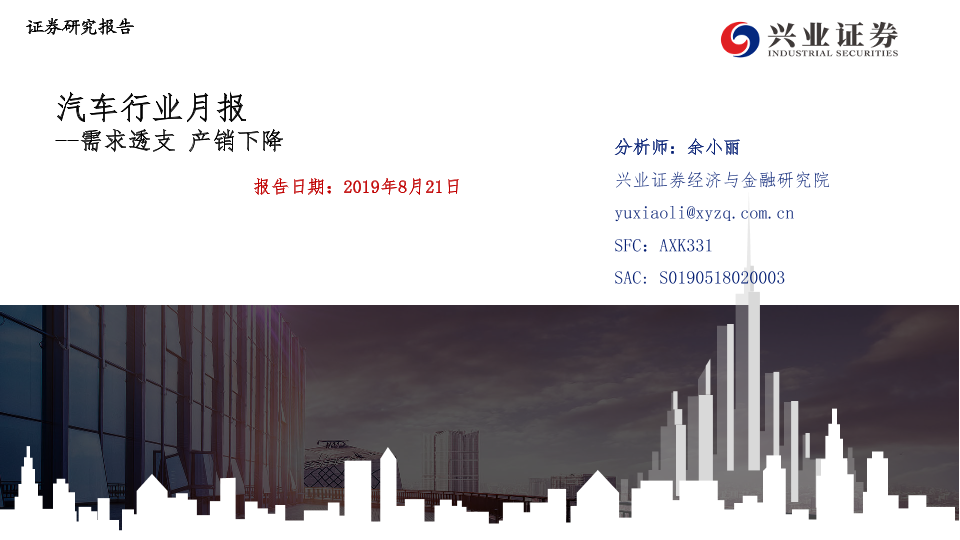 【兴业证券】【20190821】20190821-兴业证券-汽车行业月报:需求透支 产销下降-23页