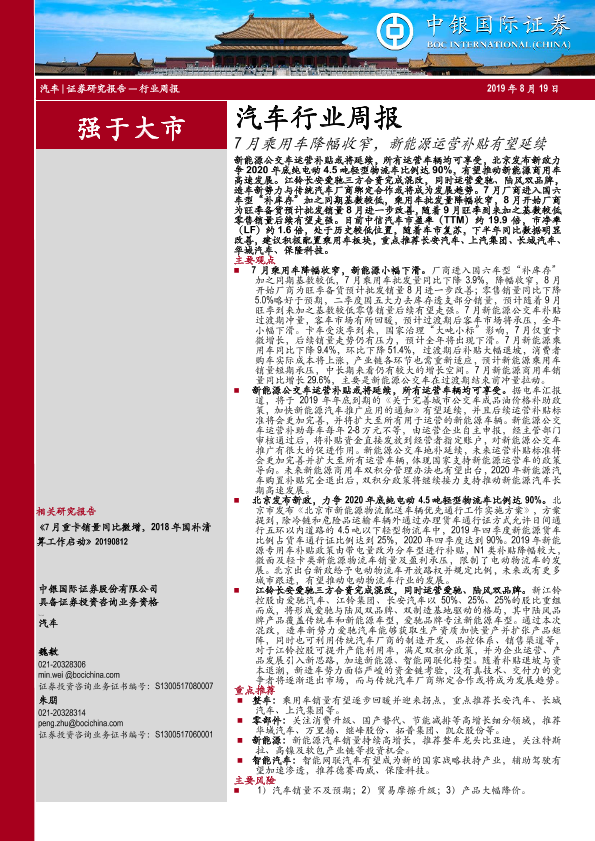 【中银证券】【20190819】20190819-中银证券-汽车行业周报:7月乘用车降幅收窄,新能源运营补贴有望延续-19页