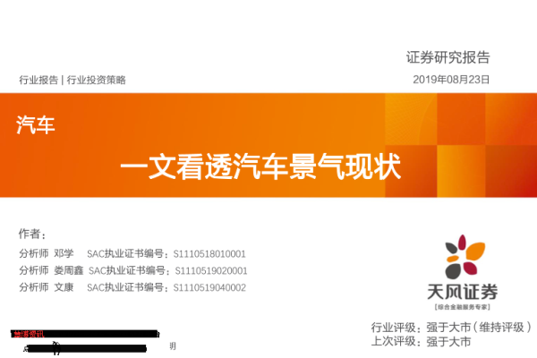 【天风证券】【20190823】汽车:一文看透汽车景气现状-55页