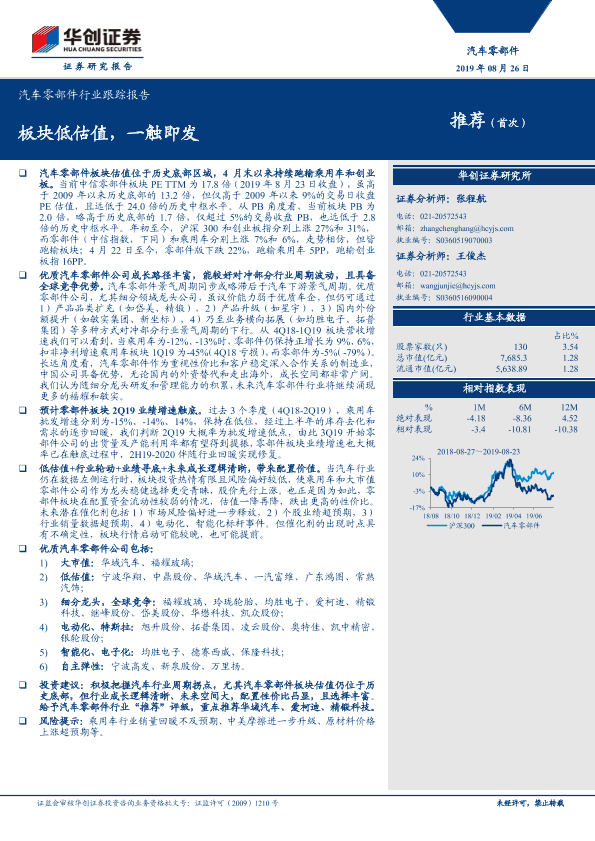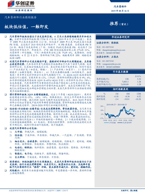 【华创证券】【20190826】汽车零部件行业跟踪报告:板块低估值,一触即发-5页