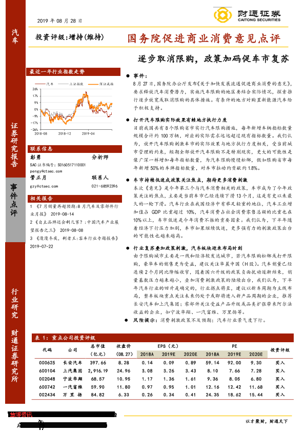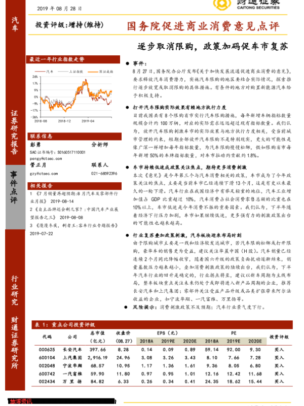 【财通证券】【20190828】汽车:国务院促进商业消费意见点评-逐步取消限购,政策加码促车市复苏-4页